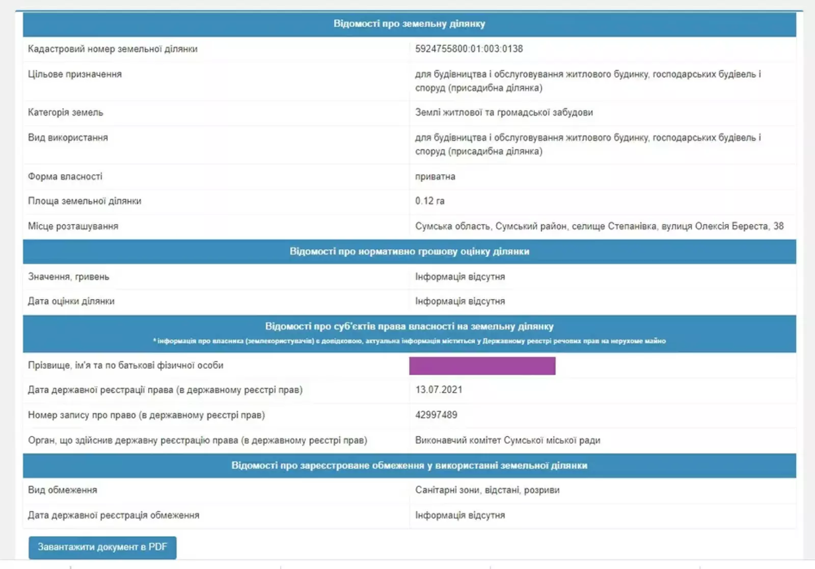 Назначение: под жилую застройку